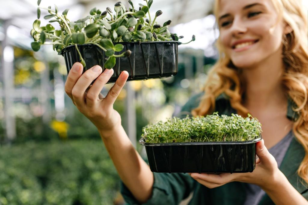 Ein Schalenbrunnen oder ein Topf mit leiser Quelle beruhigt, ohne Platz zu nehmen. Verdunstung kühlt im Sommer spürbar. Zeige uns dein Wasser-Element und erhalte Tipps zur winterfesten, energiesparsamen Nutzung.